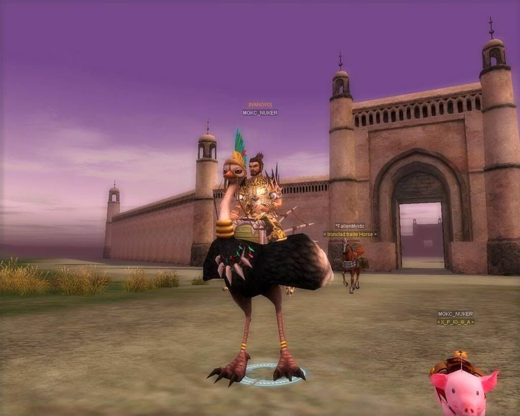 | --------------------------------------------- - на страусе (в Итем Моле продаётся по смехотворной цене - 1 силк = 0.1$) - магия в действии - один из первых караванов на слоне! (но вёл его китаец) который через минуты после этого грабанули - один из первых СОСов - Нубы-нубы и ещё раз - нубы ))) - Создание перса